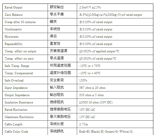 美國(guó)Transcell CR-3T稱重傳感器技術(shù)參數(shù)圖:
