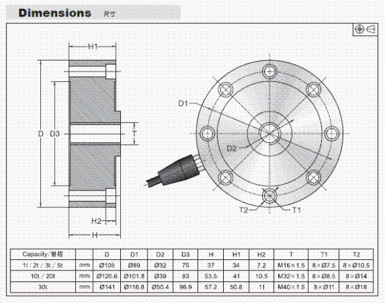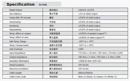 美國(guó)Transcell DBSL-3T稱重傳感器技術(shù)參數(shù)圖: