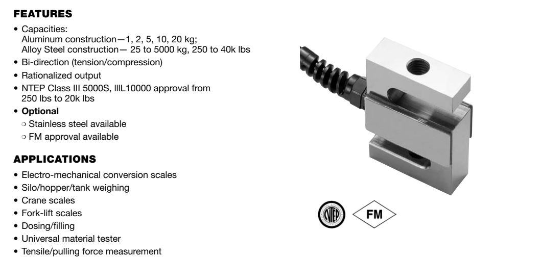 威世世銓傳感器適用于:用于拉伸或壓縮,在電子秤,平臺秤,包裝機,計量/灌裝,皮帶秤/輸送機秤,卡車/軌道尺度,筒倉/料斗/罐稱重,萬能材料試驗機,拉力/拉力測量等方面得到廣泛使用。FRG廣州南創(chuàng)電子科技有限公司