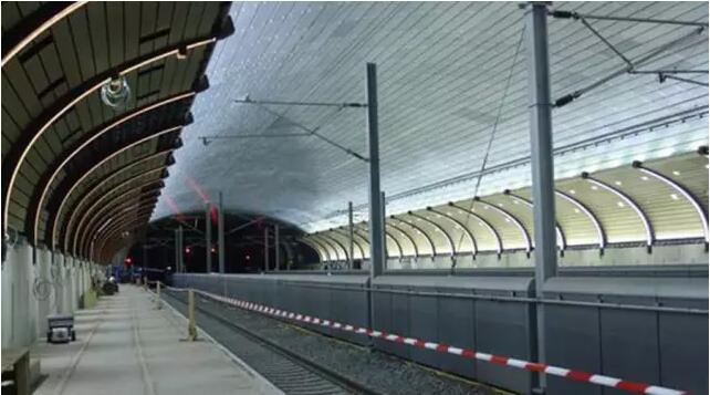 天花板采用 6 米長的錨桿懸吊,采用特殊的方式安裝,以確保極高的安裝精度。這對安裝帶來了極大地困難,因為其 離地 25 米高,并且有 200 多個應(yīng)變測量點。