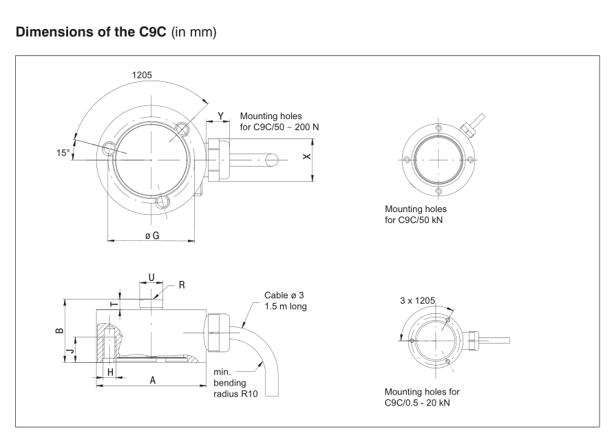 sbW廣州南創(chuàng)電子科技有限公司德國HBM力傳感器C9C/1KN尺寸圖:sbW廣州南創(chuàng)電子科技有限公司
