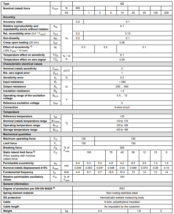 kvi廣州南創(chuàng)電子科技有限公司德國HBM C2/100KN傳感器額定量程:kvi廣州南創(chuàng)電子科技有限公司C2/500N力傳感器;C2/1KN力傳感器;C2/2KN力傳感器;C2/5KN力傳感器;C2/10KN力傳感器;C2/20KN力傳感器;C2/50KN力傳感器;C2/100KN力傳感器;C2/200KN力傳感器