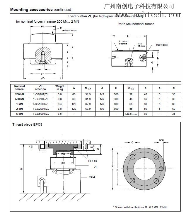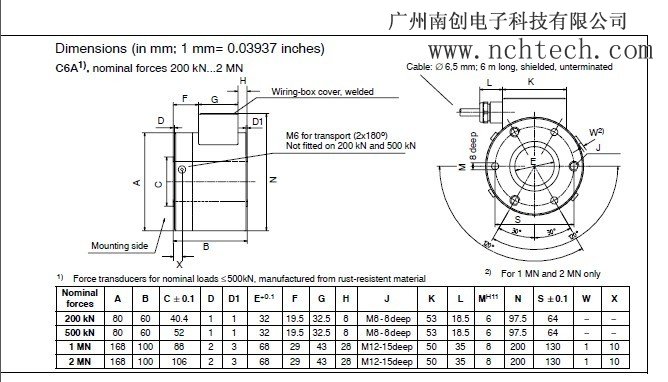 規(guī)格:C6A力傳感器/200kn/500kn