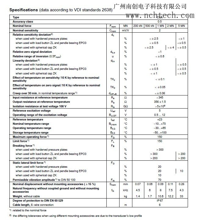 德國(guó)HBM c6a/200kn/500KN稱重傳感器主要特性: