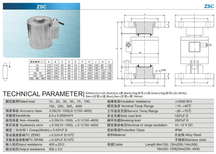 柯力 ZSC-10t稱重傳感器型號類別技術(shù)參數(shù)選型安裝等資料信息,如果有關(guān)