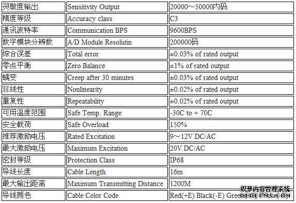 美國(guó)柯力ZSNC-A-20t稱重傳感器主要參數(shù):