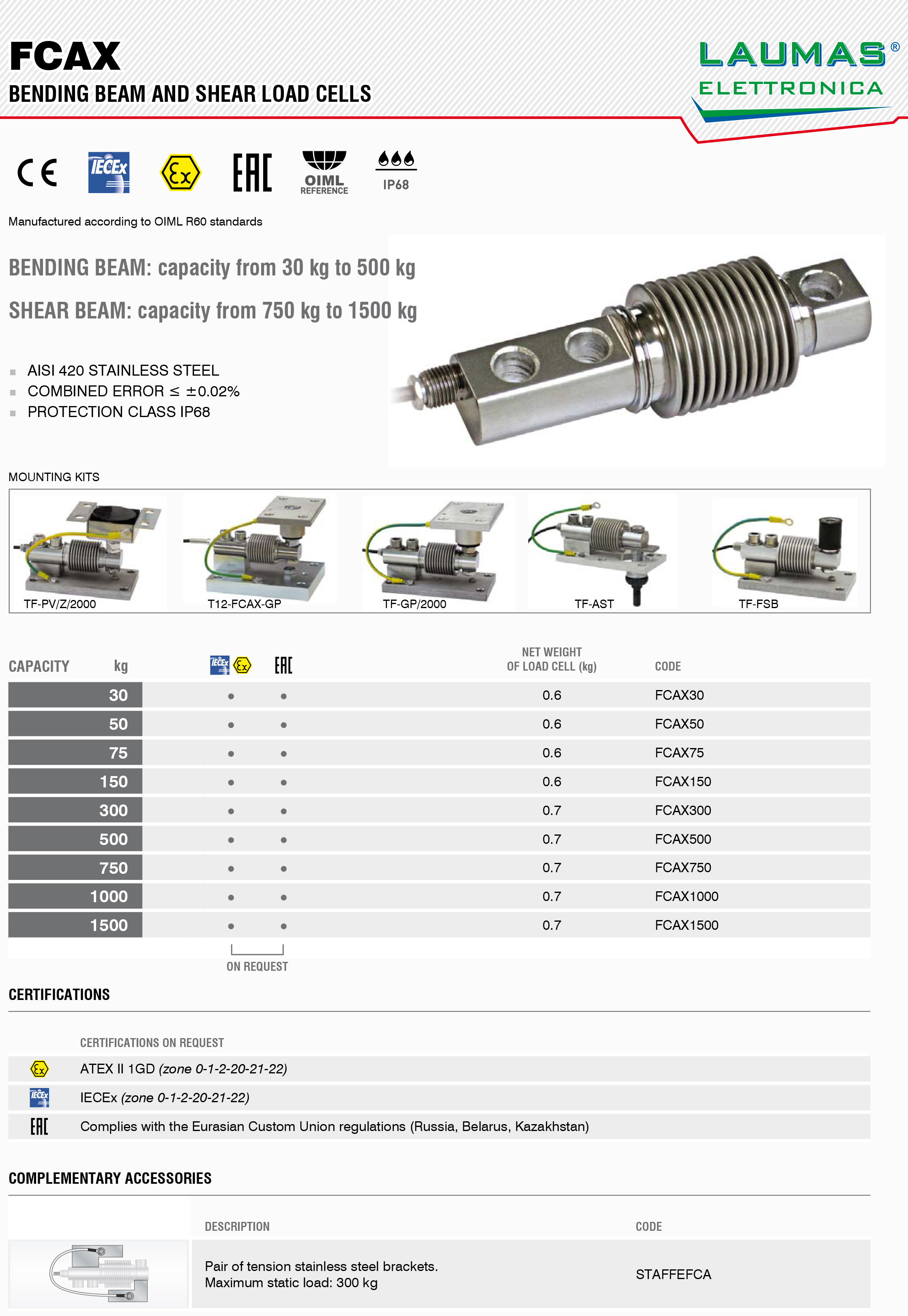 產(chǎn)品名稱:FCAX-30Kg波紋管稱重傳感器_意大利Laumas FCAX-(30~1500Kg)