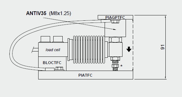 During the transport and installation the lock (*) must touch under the load cell. After installation, move the lock away from the load cell.