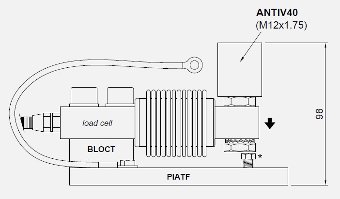 During the transport and installation the lock (*)must touch under the load cell. After installation, move the lock away from the load cell.