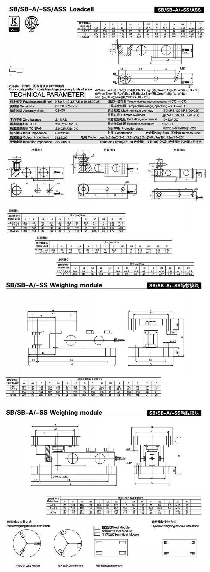 1.SB稱重傳感器(適用于汽車衡,平臺秤,配料秤及各種專用衡器)