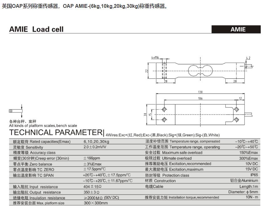 yRh廣州南創(chuàng)電子科技有限公司量程:AMIE-6kg、AMIE-10kg、AMIE-20kg、AMIE-30kg