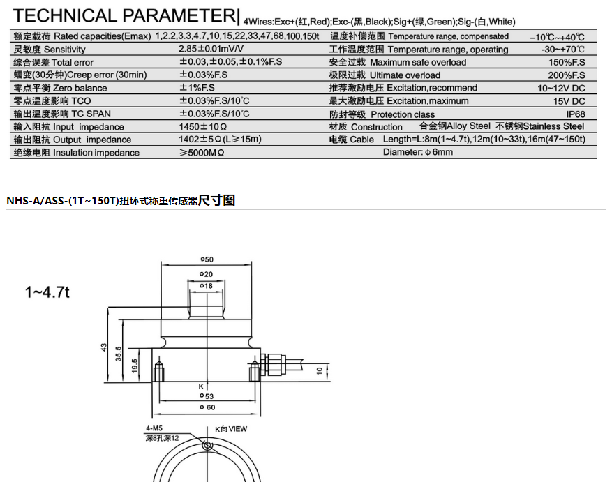 柯力 NHS-ASS-10t稱重傳感器型號類別技術(shù)參數(shù)選型安裝等資料信息,如果有關(guān)