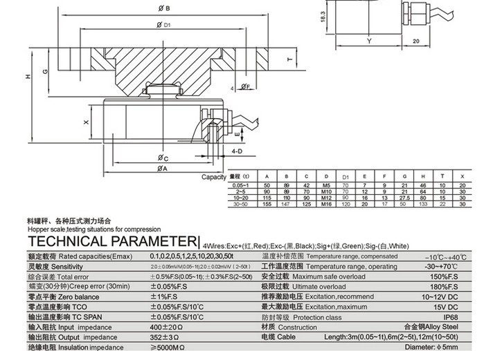 YBSC-A稱重傳感器參數(shù):
