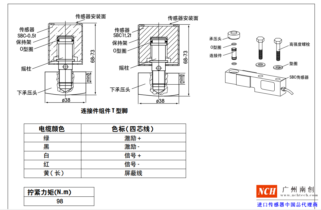 SBC傳感器額定容量500,1000,2000 Kg