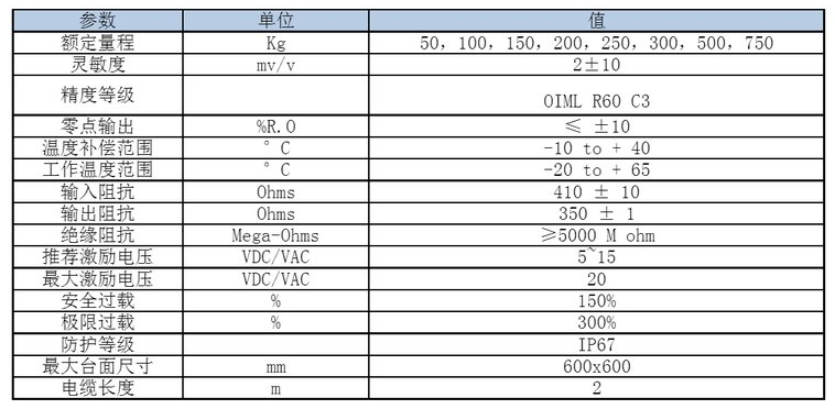 JnV廣州南創(chuàng)電子科技有限公司(6)量程可選:50,100,150,200,250,300,500,750kg