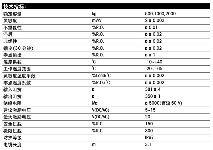 8ad廣州南創(chuàng)電子科技有限公司METTLER TOLEDO稱重傳感器SBC-2000kg技術(shù)參數(shù):8ad廣州南創(chuàng)電子科技有限公司