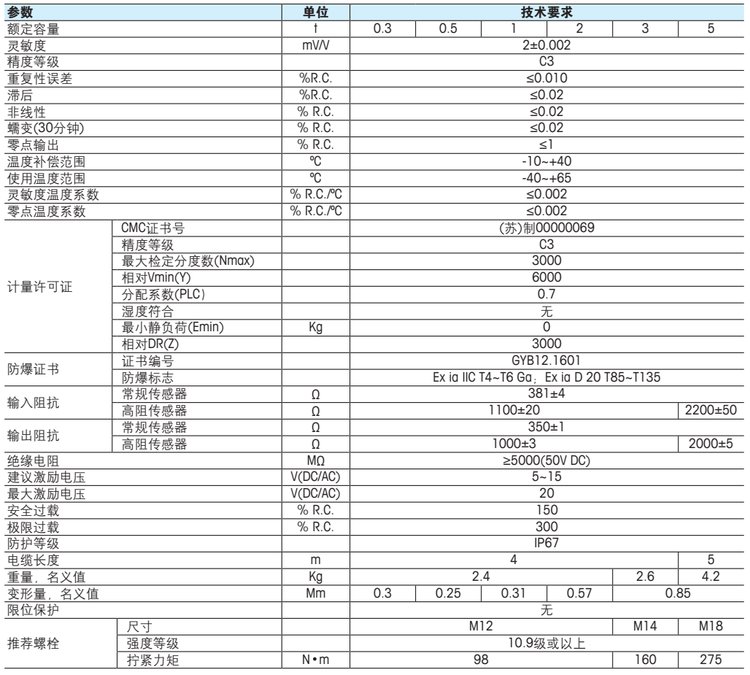 PRx廣州南創(chuàng)電子科技有限公司METTLER TOLEDO稱重傳感器SBT-0.3t技術(shù)參數(shù):PRx廣州南創(chuàng)電子科技有限公司