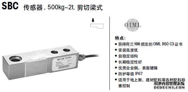 梅特勒托利多SBC系列能滿足500kg到2t的測量范圍,采用17-4PH不銹鋼制作,電子膠密封,防油,防水和抗腐蝕性氣體及介質(zhì),稱重傳感器SBC-1000kg可用于各種環(huán)境雙剪切梁結(jié)構(gòu)設(shè)計,適用于電子汽車衡,軌道衡,料斗秤及其他電子衡器。