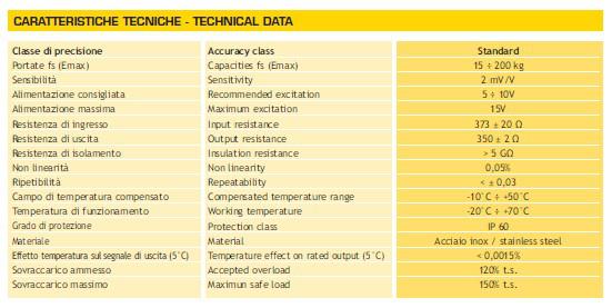 意大利N.B.C Mod EC稱重傳感器技術(shù)參數(shù):