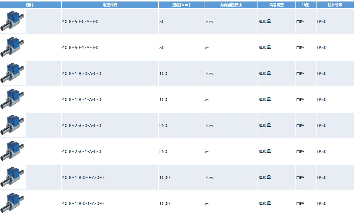 選型代碼 | 量程[Nm] | |||||