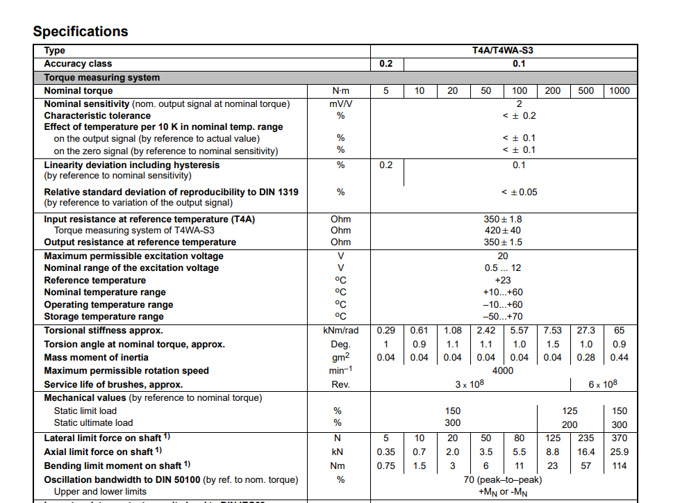 德國HBM T4A扭矩傳感器技術(shù)參數(shù):