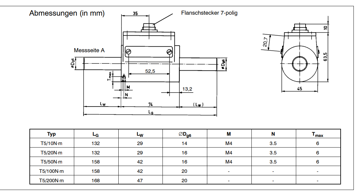 德國HBM T5扭矩傳感器技術參數(shù)圖: