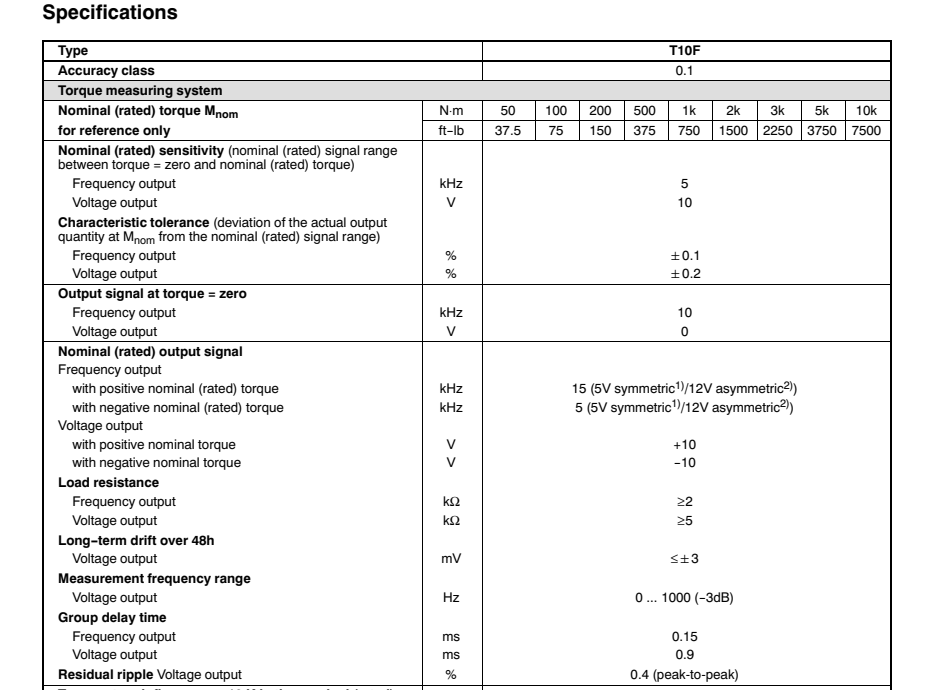 德國HBM T10F扭矩傳感器技術(shù)參數(shù):