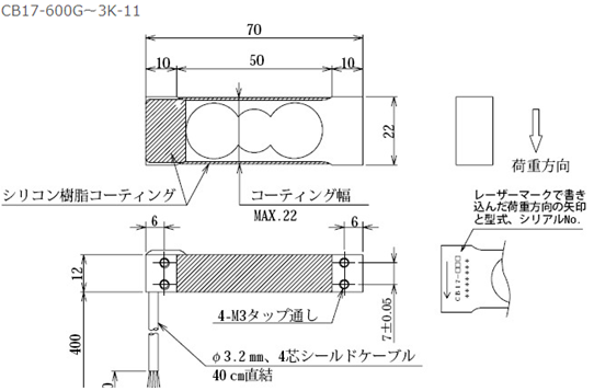 日本NMB CB17-600G-11稱重傳感器外形尺寸: