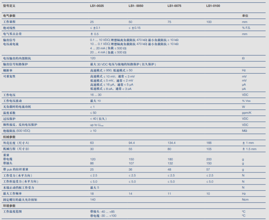 諾沃泰克LS1-0050位移傳感器型號類別技術參數(shù)選型安裝等資料信息,如果有