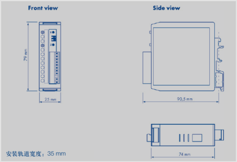 hrE廣州南創(chuàng)電子科技有限公司標(biāo)準(zhǔn)導(dǎo)軌固定安裝,符合 DIN EN 50022 標(biāo)準(zhǔn)