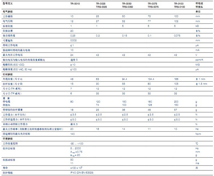 德國Novotechnik TR系列直線位移傳感器參數(shù)圖: