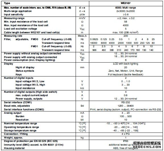 WE2107稱重顯示器的參數(shù)一如下: