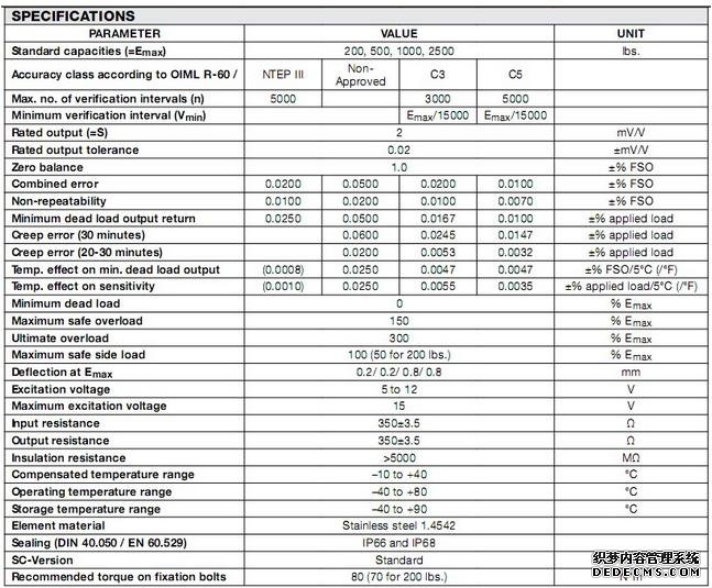 美國Vishay Revere稱重傳感器9102-200lbs是在一定的壓力(內部或外部的壓力)的工作,所以它必須承受壓力無塑性變形在整個工作過程中。