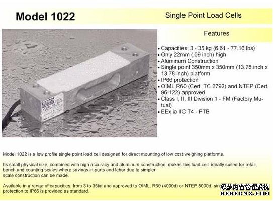 美國Tedea-Huntleigh稱重傳感器1022系列所有型號: