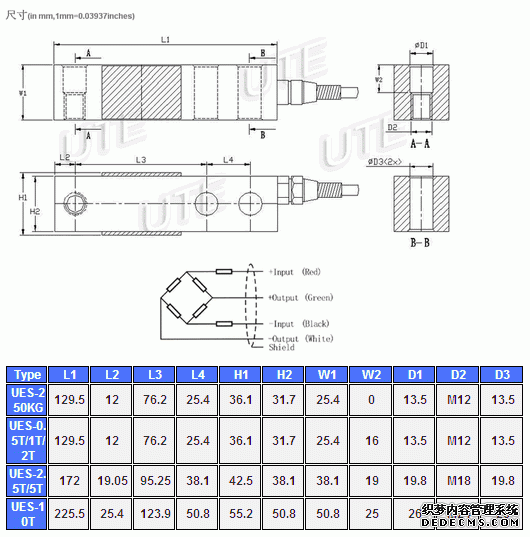 臺灣UTE UES系列稱重傳感器產(chǎn)品參數(shù)圖:vyH廣州南創(chuàng)電子科技有限公司