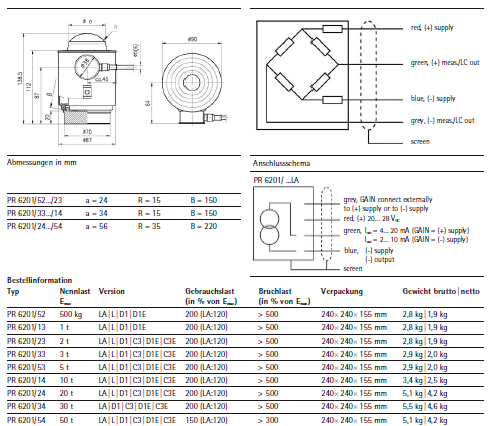 賽多利斯Sartorius PR6201系列稱重傳感器所有量程如下:Rhh廣州南創(chuàng)電子科技有限公司