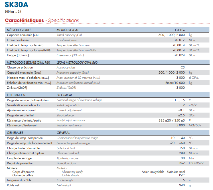SK30A-500KG稱重傳感器法國Scaime產(chǎn)品參數(shù)圖:Bsu廣州南創(chuàng)電子科技有限公司