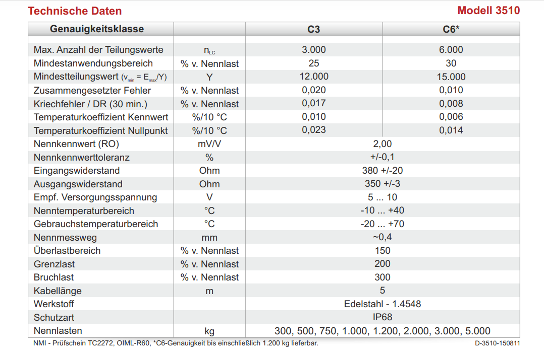xVb廣州南創(chuàng)電子科技有限公司德國SOEMER 3510系列稱重傳感器技術(shù)參數(shù):