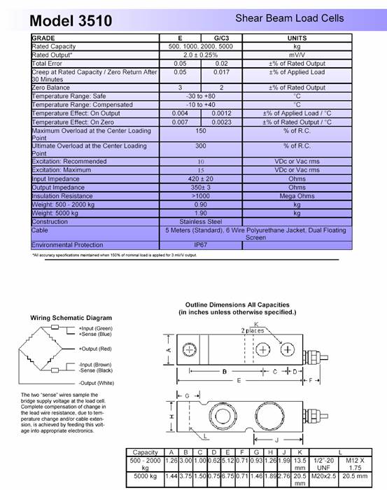 美國TEDEA-HUNTLEIGH 3510-2000kg稱重傳感器技術(shù)參數(shù)圖: