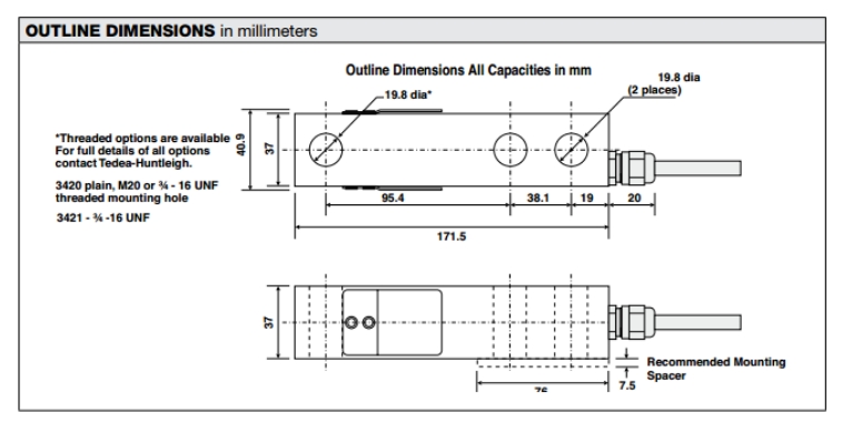 Ylu廣州南創(chuàng)電子科技有限公司Ylu廣州南創(chuàng)電子科技有限公司Ylu廣州南創(chuàng)電子科技有限公司特迪亞稱重傳感器3420-2000LB產(chǎn)品尺寸:Ylu廣州南創(chuàng)電子科技有限公司
