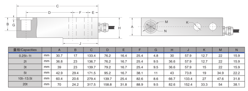 OQu廣州南創(chuàng)電子科技有限公司美國傳力Transcell稱重傳感器SBSZ-250kg技術參數(shù)圖:OQu廣州南創(chuàng)電子科技有限公司