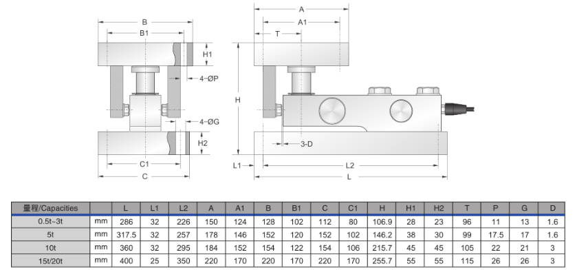 qmn廣州南創(chuàng)電子科技有限公司量程:250lb,250kg,500kg,1t,1.5t,2t,2.5t,5t