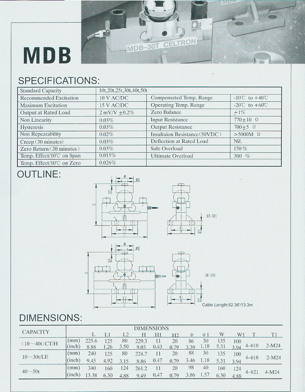 美國(guó)世銓celtron MDB-30T稱(chēng)重傳感器各項(xiàng)技術(shù)指標(biāo):