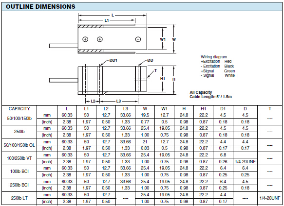 美國世銓Celtron MBB系列稱重傳感器所有量程如下:Klm廣州南創(chuàng)電子科技有限公司