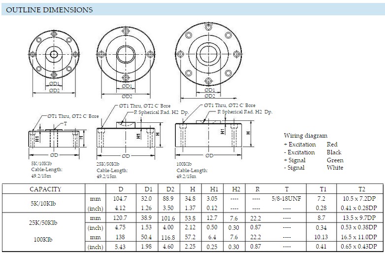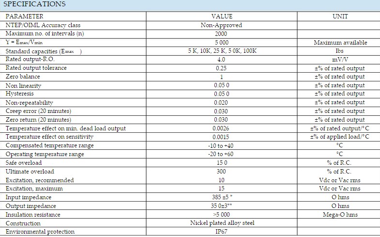 美國Celtron LCD-TT/M/MH-60T稱重傳感器系列稱重傳感器所有量程如下: