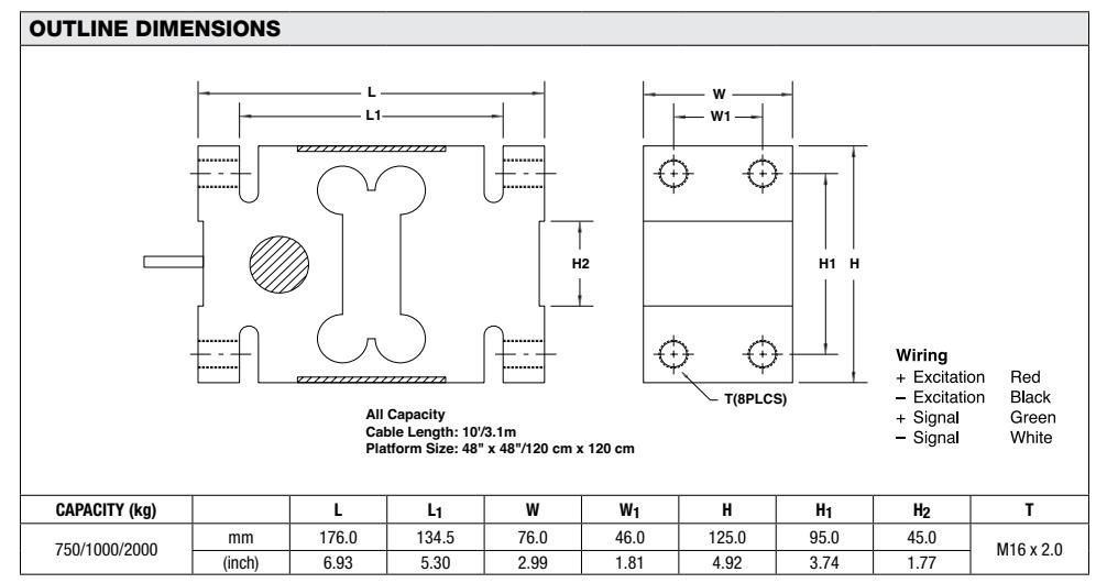 美國威士世銓HOC-750kg稱重傳感器有3個量程可選,分別是HOC-750kg、HOC-1000kg、HOC-2000kg,主要應(yīng)用于大量程平臺秤、包裝機、灌裝秤、煤炭輸送機秤等方面稱重測量,其尺寸圖如下: