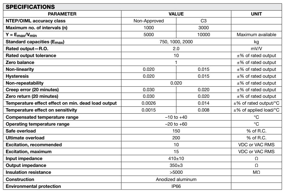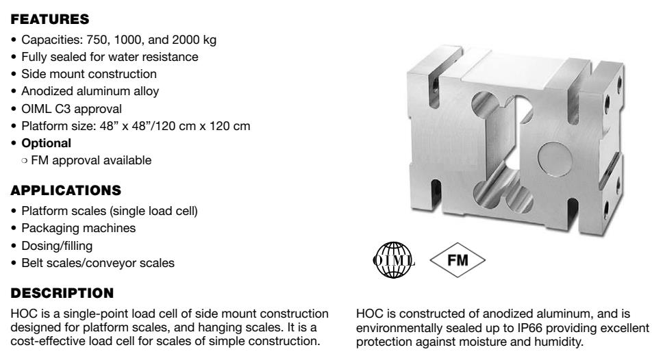 美國CeltronHOC-750kg稱重傳感器產(chǎn)品參數(shù):