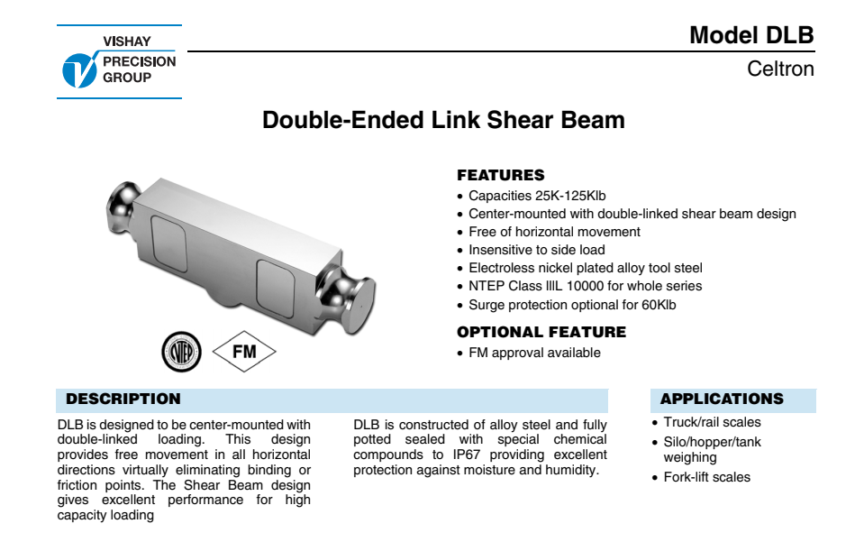 vishay celtron DLB-100klb稱重傳感器型號類別技術(shù)參數(shù)選型安裝等資料信息,如果有關(guān)