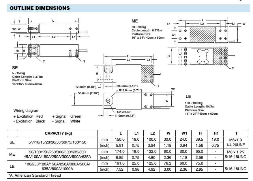 hL2廣州南創(chuàng)電子科技有限公司量程范圍:45kgAME 100kgAME 150kgAME 250kgAME 300kgAME 500kgAME 635kgAME