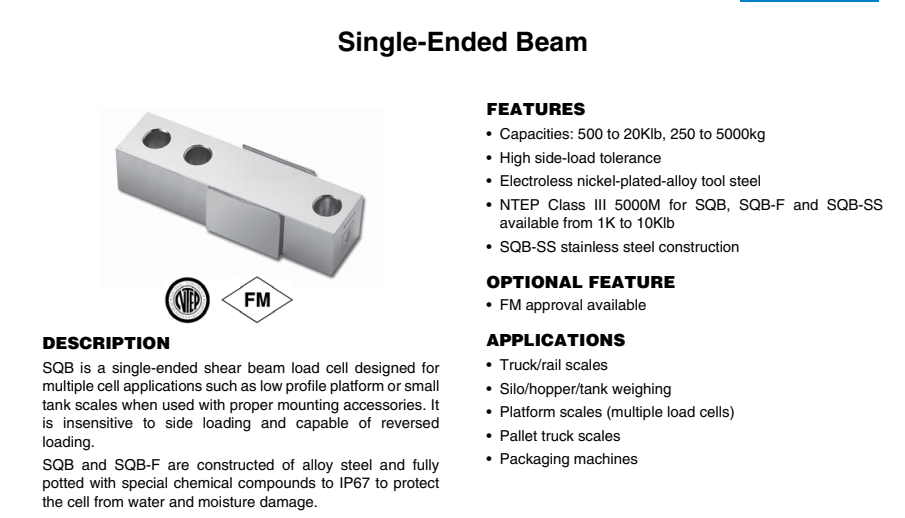 eWO廣州南創(chuàng)電子科技有限公司美國vishay celtron SQB-3Klb 稱重傳感器特點(diǎn):eWO廣州南創(chuàng)電子科技有限公司單剪切梁稱重傳感器